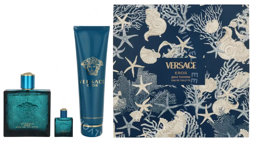 Versace Eros Pour Homme Giftset 255ml Edt Spray 100ml/Bath & Shower Gel 150ml/Edt 5ml verpakking